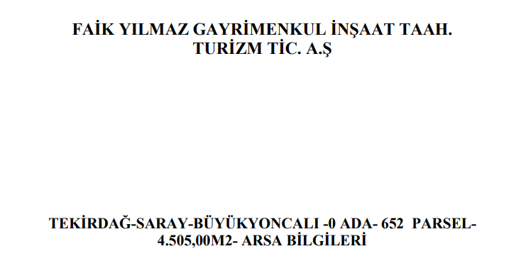TEKİRDAĞ-SARAY-BÜYÜKYONCALI -0 ADA- 652 PARSEL